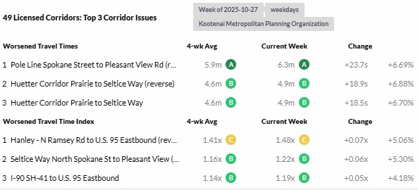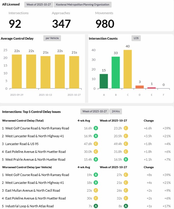 Corridor Performance Week of 10/27/2025 Week of 10/20/2025 Week of 10/13/2025 Week of 10/06/2025Intersection Performance