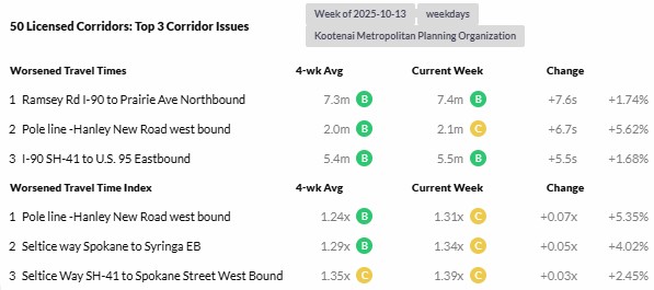KMPO began acquiring data from Inrix in late September 2022. For that reason, weekly and monthly reports for September are not available.