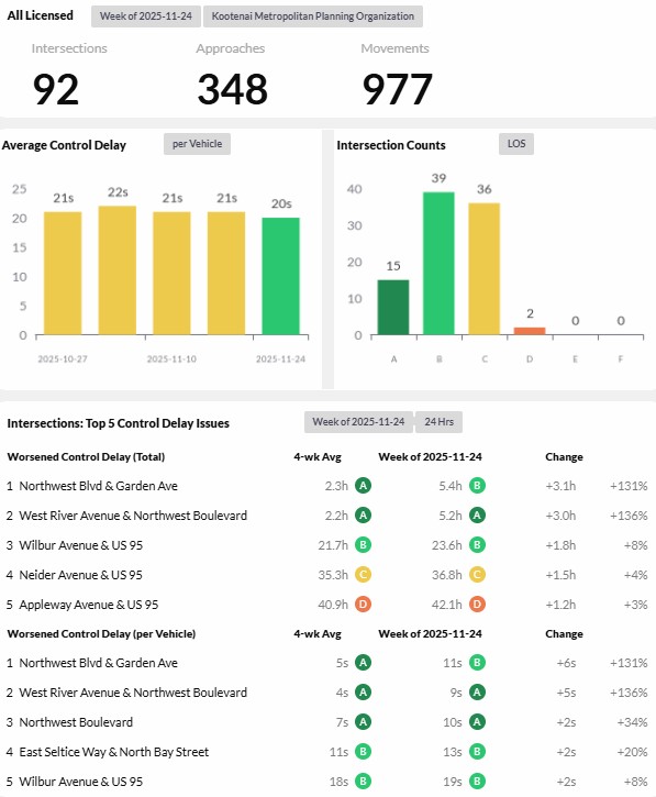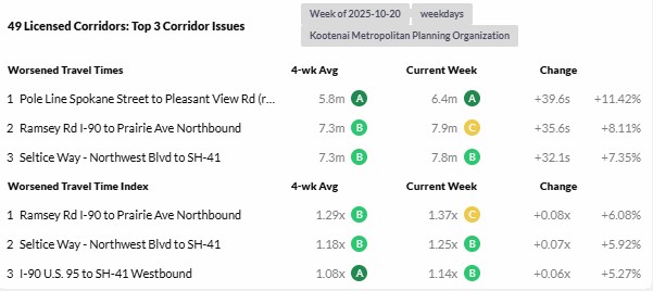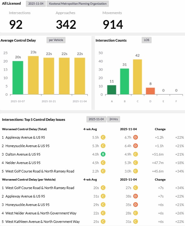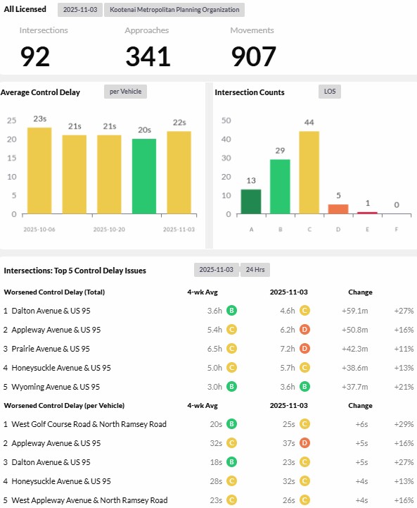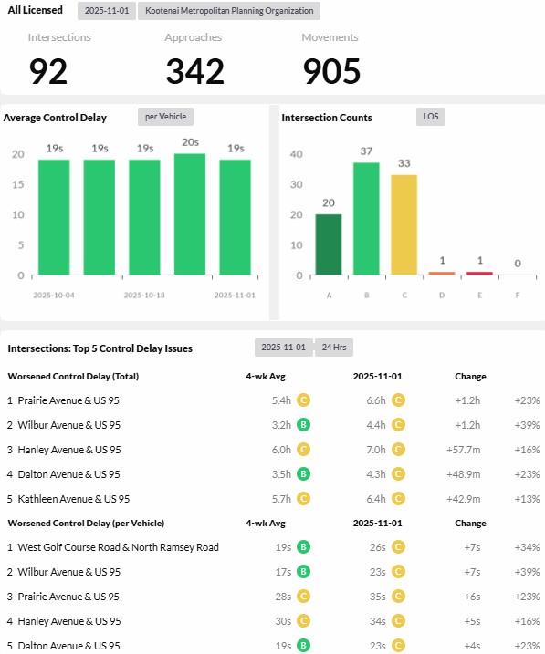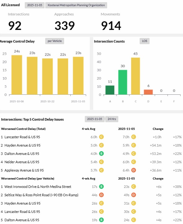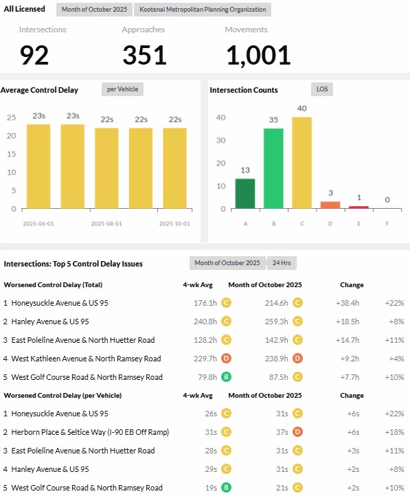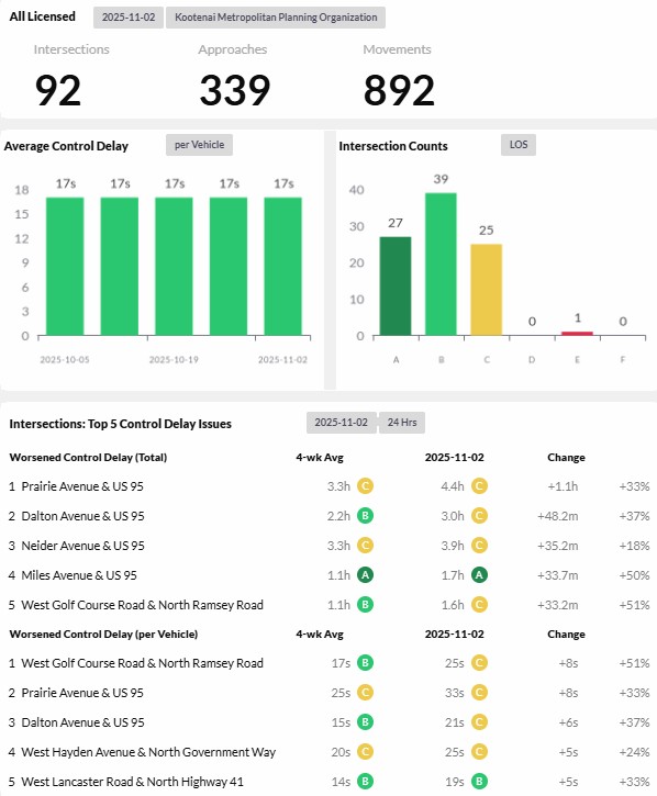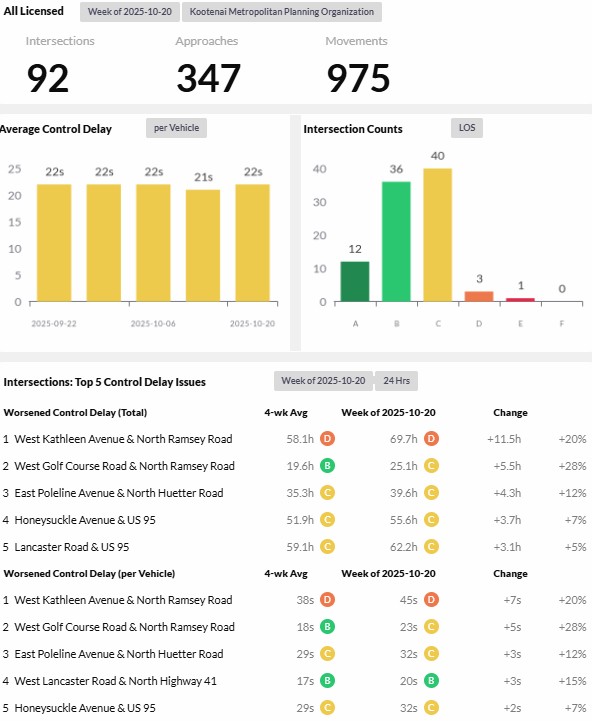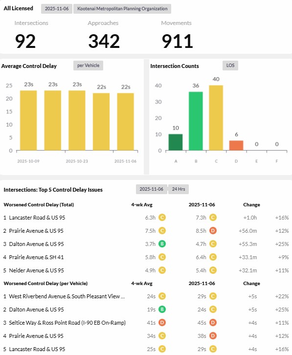 Corridor Performance Week of 10/27/2025 Week of 10/20/2025 Week of 10/13/2025 Week of 10/06/2025Intersection Performance