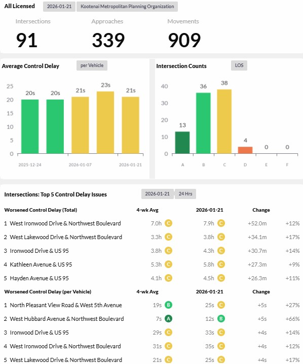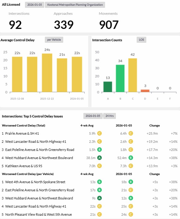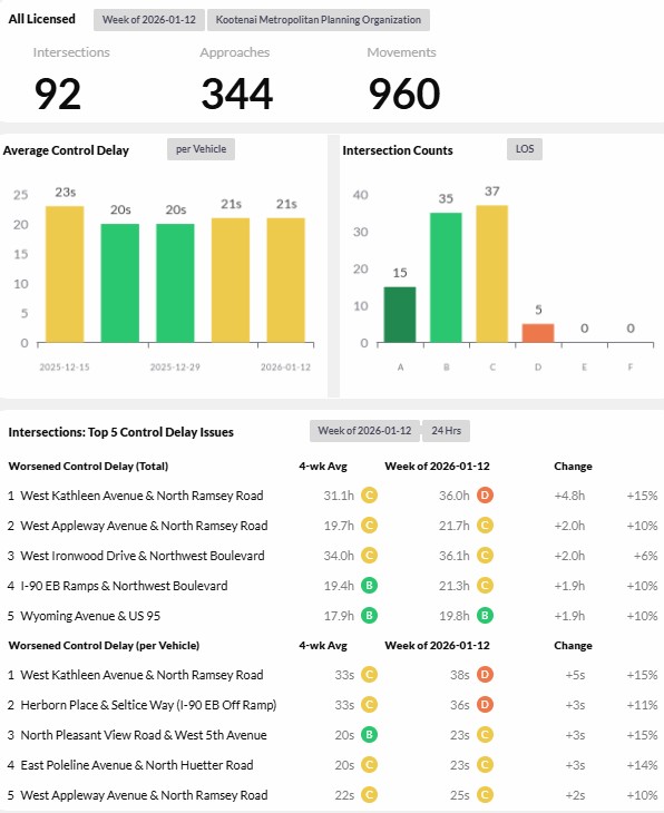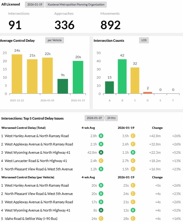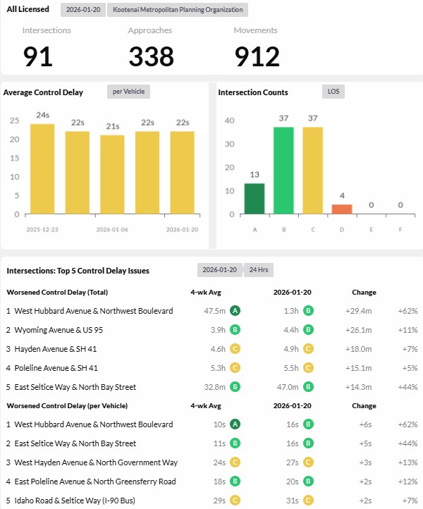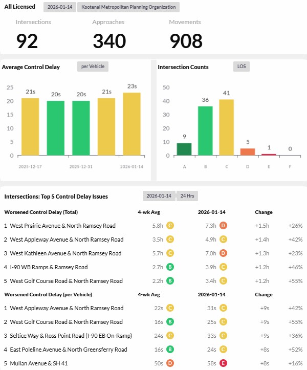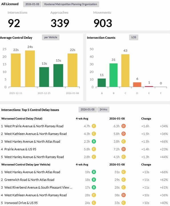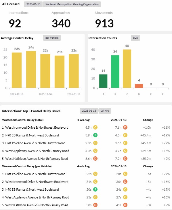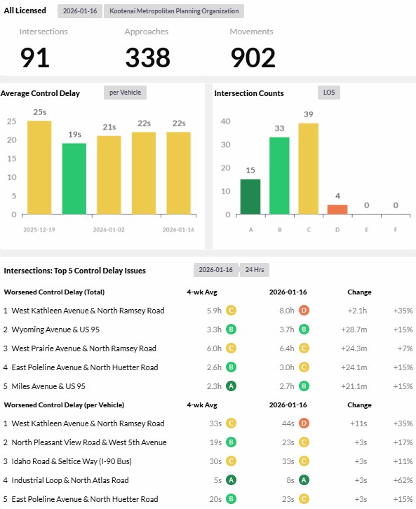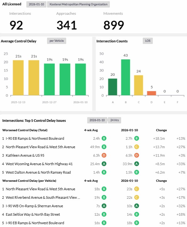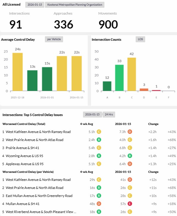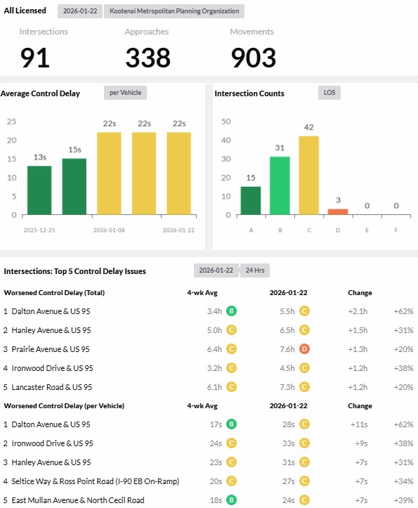 INRIX IQ platform provides great insight and understanding into the performance of the existing 116+ traffic signals in the area by allowing local jurisdictions to: