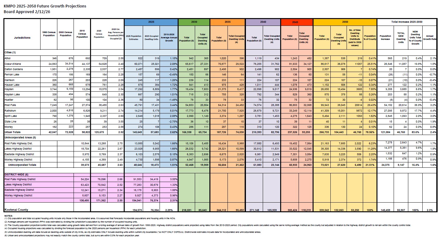 The Kootenai Metropolitan Planning Organization (KMPO) Board approved the 2018 update to the 2016 Travel Demand Model on January 9, 2020.
